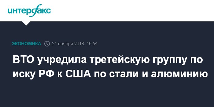 Как сообщалось, Россия 18 октября подала запрос в ВТО на формирование панели арбитров по российскому иску в отношении американских ограничений на поставку стали и алюминия, так как проведенные консультации не дали нужного результата.