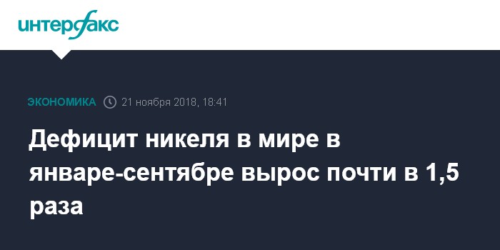 Дефицит никеля в мире в январе-сентябре вырос почти в 1,5 раза