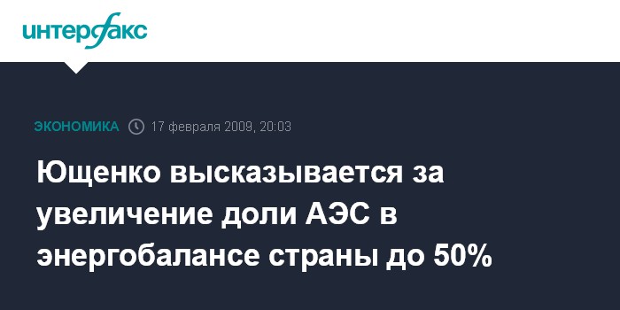 Киев. 17 февраля. ИНТЕРФАКС-УКРАИНА - Необходимо сократить объем диспетчерских ограничений допустимой мощности атомных электростанций (АЭС) и повысить долю атомной электроэнергии в общем объеме ее производства, по меньшей мере, до 50%, считает президент Украины Виктор Ющенко.
