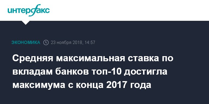 Средняя максимальная ставка по вкладам банков топ-10 достигла максимума с конца 2017 года