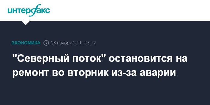 "Северный поток" остановится на ремонт во вторник из-за аварии
