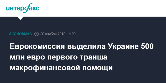 Москва. 30 ноября. INTERFAX.RU - Президент Украины Петр Порошенко сообщил о решении Европейской комиссии выделить Украине первый транш Четвертой программы макрофинансовой помощи ЕС в объеме 500 млн евро и поблагодарил ЕК за это решение.