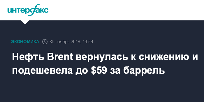 Нефть Brent вернулась к снижению и подешевела до $59 за баррель