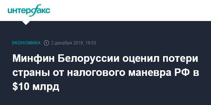 Минфин Белоруссии оценил потери страны от налогового маневра РФ в $10 млрд