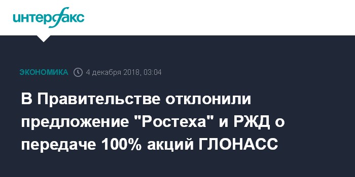 "Коммерсант" напоминает, что "Ростех" и ОАО РЖД сделали предложение о покупке 100% акций АО ГЛОНАСС в октябре. Основной мотивацией являлось создание на базе АО единой цифровой транспортно-логистической системы.