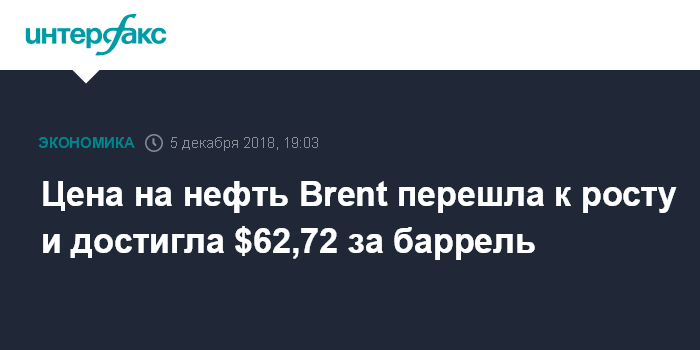 Цена на нефть Brent перешла к росту и достигла $62,72 за баррель