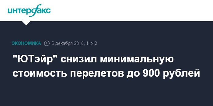 "ЮТэйр" снизил минимальную стоимость перелетов до 900 рублей