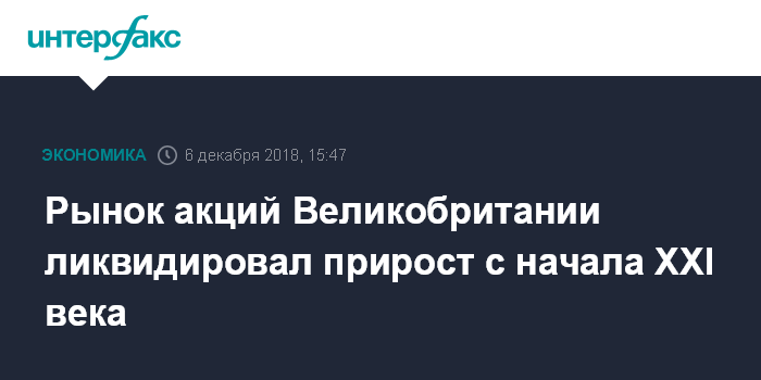 Рынок акций Великобритании ликвидировал прирост с начала XXI века