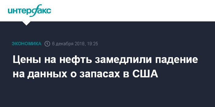 Москва. 6 декабря. INTERFAX.RU - Цены на нефть немного замедлили падение в ходе торгов в четверг после публикации позитивных данных о сокращении товарных запасов топлива в США.