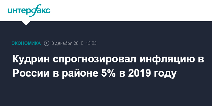 Кудрин спрогнозировал инфляцию в России в районе 5% в 2019 году