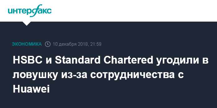 Москва. 10 декабря. INTERFAX.RU - Два крупных британских банка - HSBC Holdings Plc и Standard Chartered Plc - угодили в ловушку, работая с китайской технологической компанией Huawei Technologies Co., находящейся в последнее время в сложной ситуации, пишет газета The Wall Street Journal.