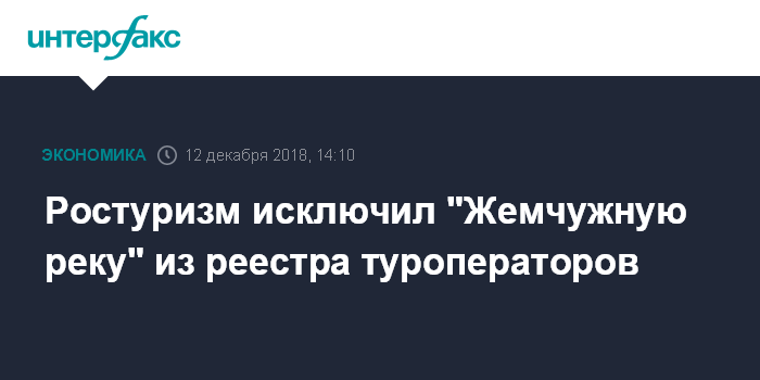 Ростуризм исключил "Жемчужную реку" из реестра туроператоров