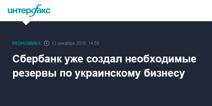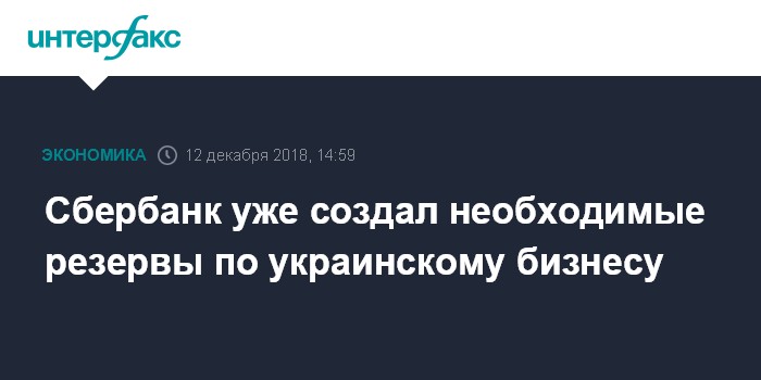 Сбербанк уже создал необходимые резервы по украинскому бизнесу