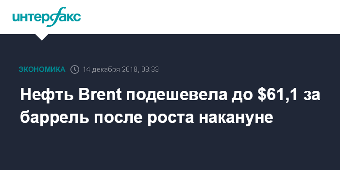 Нефть Brent подешевела до $61,1 за баррель после роста накануне