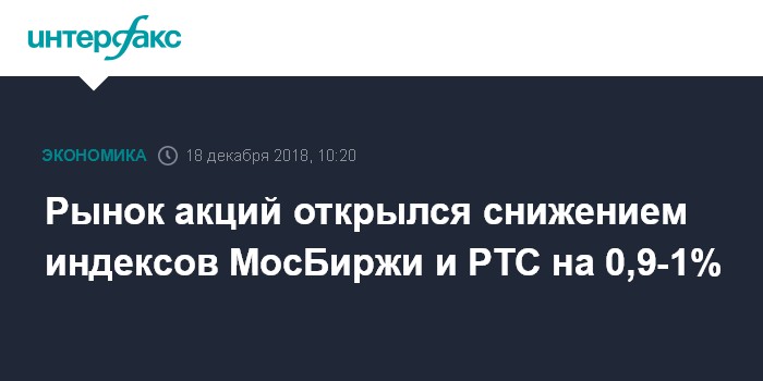 Москва. 18 декабря. INTERFAX.RU - Рынок акций РФ открылся во вторник снижением цен blue chips на фоне ухудшения внешней конъюнктуры на ожиданиях роста ставки Федрезерва США и опасениях введения новых антироссийских западных санкций; индексы МосБиржи и РТС за минуту торгов снизились на 0,9-1%.