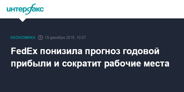 Москва. 19 декабря. INTERFAX.RU - FedEx Corp., одна из крупнейших в мире компаний экспресс-доставки, понизила прогноз прибыли на текущий финансовый год, завершающийся в мае 2019 года, и начала программу добровольного увольнения.