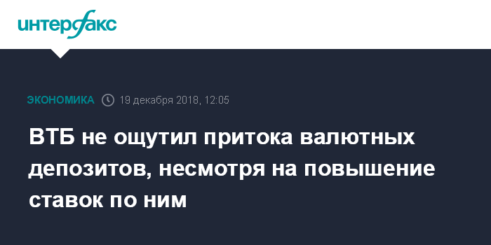 ВТБ не ощутил притока валютных депозитов, несмотря на повышение ставок по ним