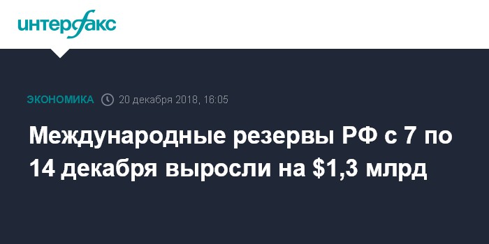 Международные резервы РФ с 7 по 14 декабря выросли на $1,3 млрд