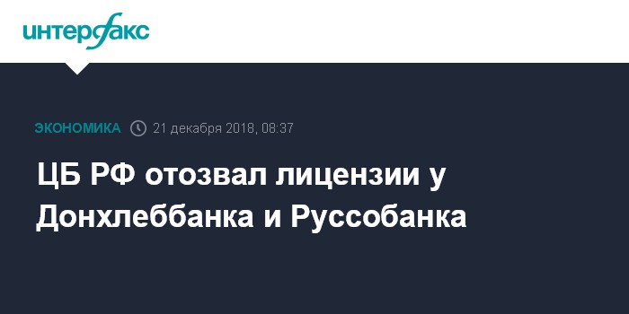 ЦБ РФ отозвал лицензии у Донхлеббанка и Руссобанка