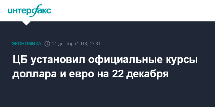 ЦБ установил официальные курсы доллара и евро на 22 декабря