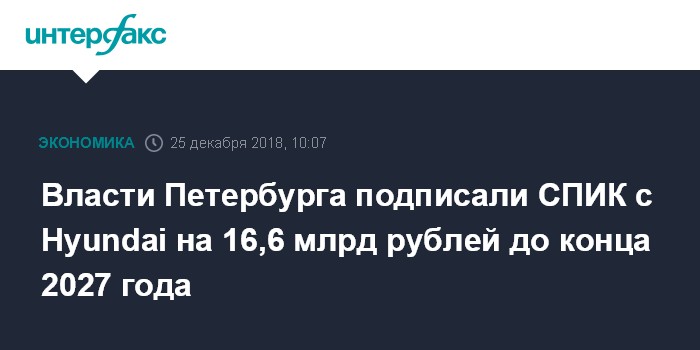 Власти Петербурга подписали СПИК с Hyundai на 16,6 млрд рублей до конца 2027 года