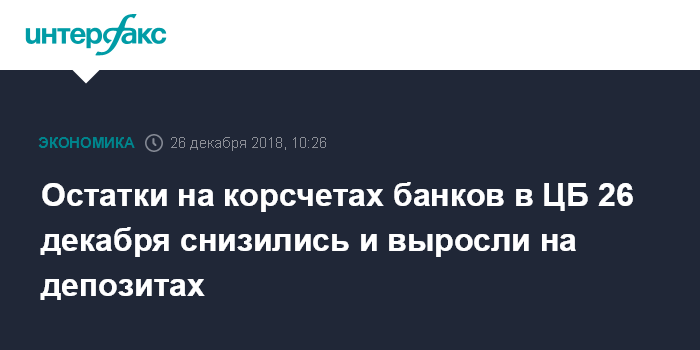 Остатки на корсчетах банков в ЦБ 26 декабря снизились и выросли на депозитах
