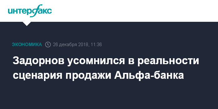 Задорнов усомнился в реальности сценария продажи Альфа-банка