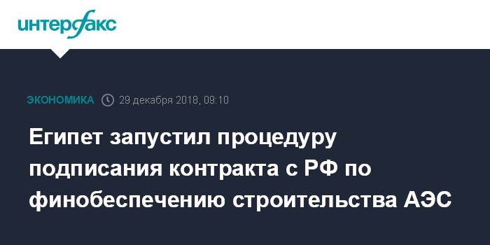 Египет запустил процедуру подписания контракта с РФ по финобеспечению строительства АЭС