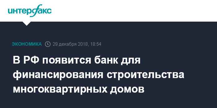 Москва. 29 декабря. INTERFAX.RU - Президент России Владимир Путин поручил правительству создать специализированный банк для финансирования строительства многоквартирных домов, сообщается в субботу на сайте Кремля.