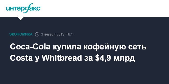 Москва. 3 января. INTERFAX.RU - Whitbread PLC закрыла сделку по продаже The Coca-Cola Company сети кофейных предприятий Costa.
