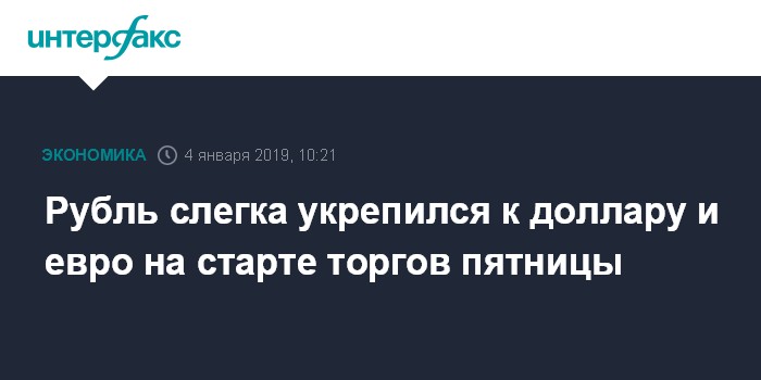 Москва. 4 января. INTERFAX.RU - Доллар США и евро слегка снижаются на "Московской бирже" в пятницу утром; рубль укрепляется к бивалютной корзине благодаря растущей нефти и активизировавшемуся спросу инвесторов на рисковые активы.