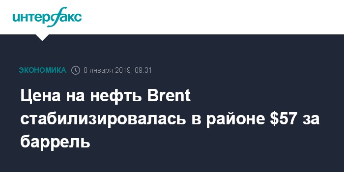 Цена на нефть Brent стабилизировалась в районе $57 за баррель
