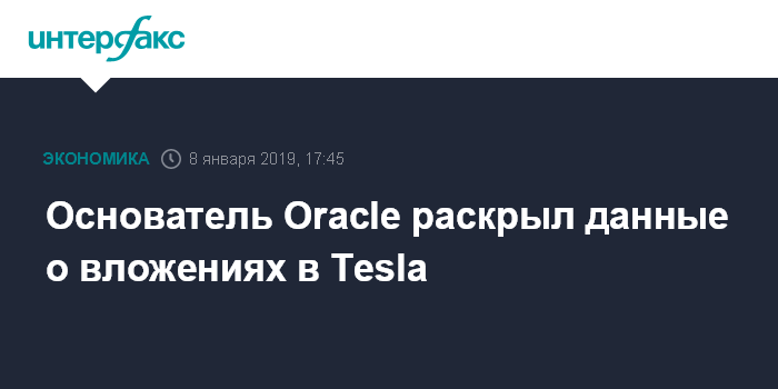 Москва. 8 января. INTERFAX.RU - Ларри Эллисон, один из основателей Oracle Corp., раскрыл данные о вложениях в Tesla Inc., сообщив, что владеет 3 млн акций американского производителя электромобилей, которые оцениваются в $1 млрд.