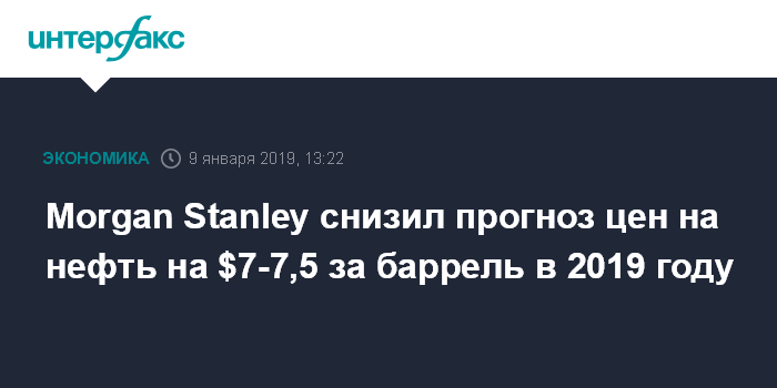 Москва. 9 января. INTERFAX.RU - Аналитики Morgan Stanley снизили прогноз цен на нефть эталонных марок на 2019 год на $7-7,5 за баррель.