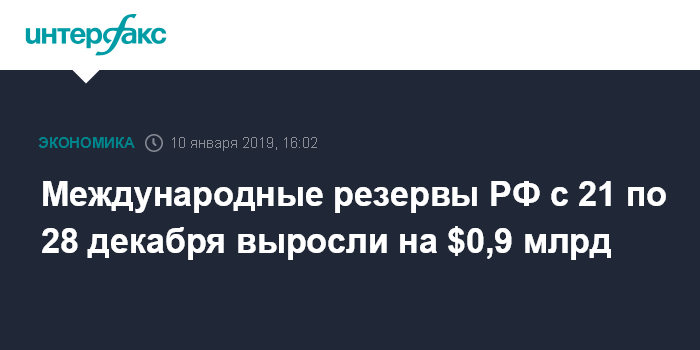 Международные резервы РФ с 21 по 28 декабря выросли на $0,9 млрд