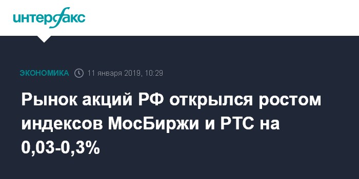 Рынок акций РФ открылся ростом индексов МосБиржи и РТС на 0,03-0,3%