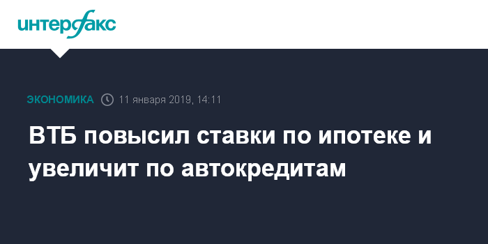 ВТБ повысил ставки по ипотеке и увеличит по автокредитам