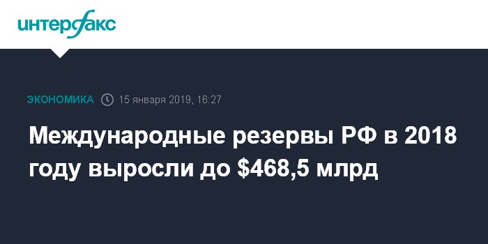 Международные резервы РФ в 2018 году выросли до $468,5 млрд