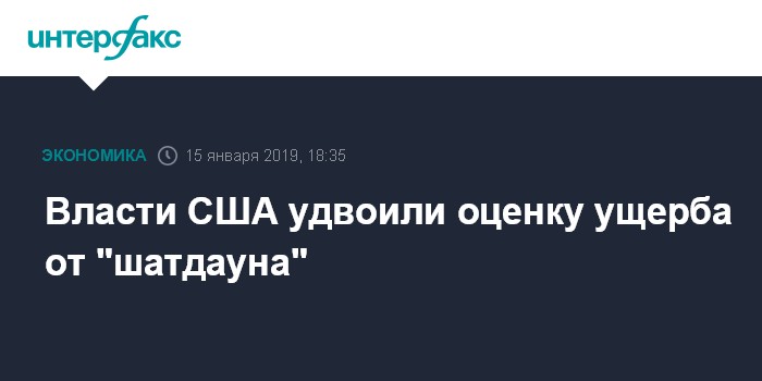 Москва. 15 января. INTERFAX.RU - Правительство США увеличило оценку ущерба экономике страны от частичной приостановки работы федеральных учреждений в два раза, пишет CNBC со ссылкой на информированный источник в правительстве.