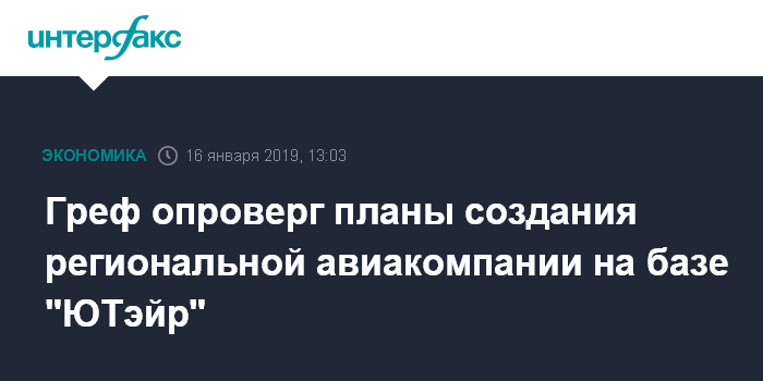 Греф опроверг планы создания региональной авиакомпании на базе "ЮТэйр"