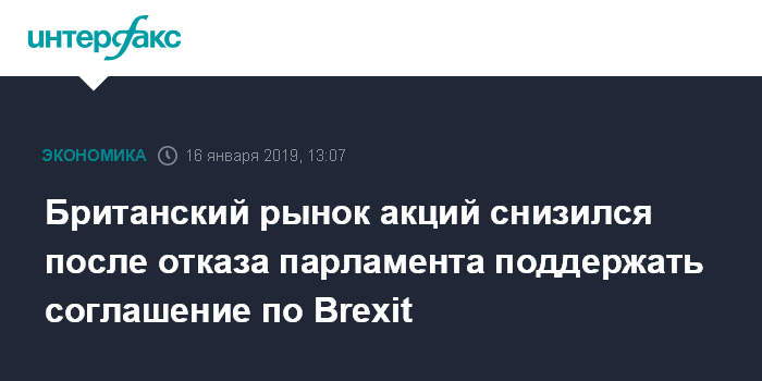 Как сообщалось, британский парламент во вторник с подавляющим перевесом голосов проголосовал против соглашения по выходу Великобритании из ЕС, и оппозиция в Палате общин инициирует в среду голосование о доверии правительству.