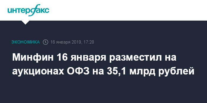 Минфин 16 января разместил на аукционах ОФЗ на 35,1 млрд рублей