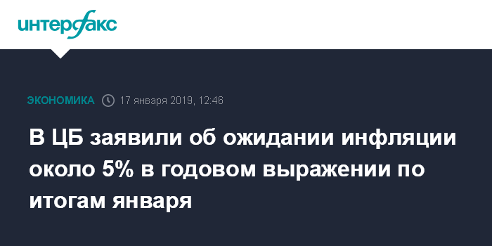 В ЦБ заявили об ожидании инфляции около 5% в годовом выражении по итогам января