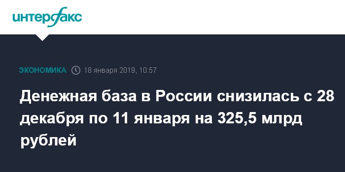Денежная база в России снизилась с 28 декабря по 11 января на 325,5 млрд рублей