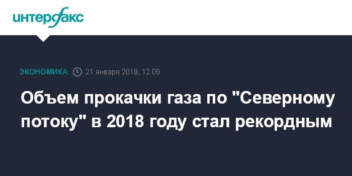 Объем прокачки газа по "Северному потоку" в 2018 году стал рекордным