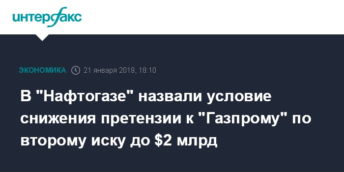Москва. 21 января. INTERFAX.RU - НАК "Нафтогаз Украины" готов снизить сумму претензий к ПАО "Газпром" с $12,5 млрд до $2 млрд при условии подписания долгосрочного контракта на транзит природного газа. Об этом сообщил журналистам исполнительный директор компании Юрий Витренко.