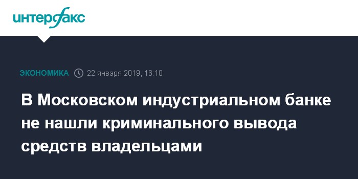 В Московском индустриальном банке не нашли криминального вывода средств владельцами