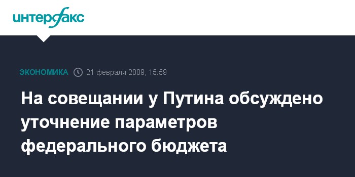 Москва. 21 февраля. INTERFAX.RU - Премьер-министр РФ Владимир Путин провел в субботу рабочее совещание по экономическим вопросам, на котором была продолжена работа по уточнению параметров федерального бюджета и бюджетов государственных внебюджетных фондов на 2009 год, сообщил "Интерфаксу" пресс-секретарь премьера Дмитрий Песков.