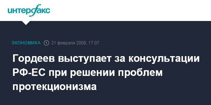Париж. 21 февраля. INTERFAX.RU - Министр сельского хозяйства РФ Алексей Гордеев считает, что Еврокомиссия и правительство России должны проводить консультации перед введением протекционистских мер во внешней торговле.