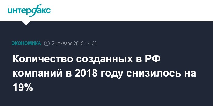 Количество созданных в РФ компаний в 2018 году снизилось на 19%